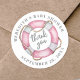Este pegatina redondo de la ducha de bebé de temática náutica cuenta con un anillo de vida rosado en el centro, con "gracias" escrito en el interior con una letra de escritura gris claro. El nombre de la madre y "Baby Shower" se muestran en la parte superior en una fuente serif gris clásica, mientras que la fecha se muestra en la parte inferior en una mezcla de tipografía de sif y script. El diseño combina elementos náuticos atemporales con un diseño minimalista y elegante, lo que lo convierte en perfecto para un Ahoy, un tema de "It's a Boy" o cualquier ducha de bebé de inspiración oceánica. Personalizar las fuentes, colores y texto para que coincidan con tu evento!