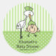 Pegatina Redonda Baby Shower neutral de bebé cigüeña