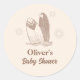 Pegatina Redonda Baby Shower Neutral Minimalista Boho Surfboard