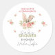 Pegatina Redonda Baby Shower Orejas de Conejo Rosa y Flores