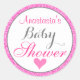 Pegatina Redonda Baby Shower Purpurina rosado caliente de la prince