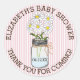 Pegatina Redonda Baby Shower Rayas rosas y blancas Mason Jar