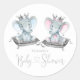 El género de la ducha de bebé de elefantes revela a pegatinas con adorables elefantes de la princesa princesa prince y elefante de la princesa bebé sentados sobre elegantes almohadas de plata en un fondo blanco. Este género de elefantes revela que los pegatinas de ducha de bebé se personalizan fácilmente con tu texto. También puede cambiar el color de fondo.