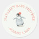 Pegatina Redonda Baby Shower rosa pingüino tropical puro