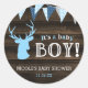 Pegatina Redonda Baby Shower Rustic Wood Blue Deer Boy
