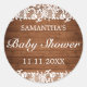 Pegatina Redonda Baby Shower Rustic Wood & White Lace