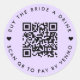 Un sencillo pegatina redondo de estilo minimalista moderno con un bonito detalle cardíaco, lavanda personalizado lila púrpura pastel "Buy the Bride a Drink" (Compra la Novia una Bebida) Bachelorette Party QR. La plantilla se puede actualizar fácilmente con el código QR y el texto personalizado, por ejemplo. escanear QR a pagar por Venmo. #bachelorette #buythebrideadrink #QRcode #pegatina