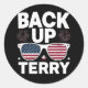 Pegatina Redonda Back Up Terry Funny 4 de julio Fuego Patriótico