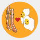 Pegatina Redonda Bacon ama Huevos Gracioso Diseño de Bacon