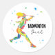 Pegatina Redonda Badminton Girl Vibrant Abstract Player Graphic