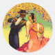 Pegatina Redonda Bailarines flamencos bajo los árboles Naranjas