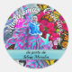 Pegatina Redonda Baile Gracias con flores y mariposas PV01