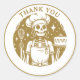 Un panadero con temática tarot único, un chef pastelero pegatina o una etiqueta de producto, con un esqueleto con bizcocho y bizcocho. Un estilo único con panadero de esqueletos en el gorra del chef. Diseño dorado de tipo oro. Esta es la versión más grande para etiquetar bolsas y paquetes. También se puede obtener en un tamaño más pequeño.