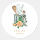 Modern watercolor frame peach floral and plaid baker, bakery, pastry chef bakery label in pretty watercolors with baking utensils and a plaid ribbon: frosting spreader knife, whisk and wooden spoon. Pink, green, burnt sienna and black and white plaid. For a home baker, dessert caterer, pastry chef or bakery. The title font is a rustic antique typeface from the 1700's still admired and in use today; an earthy and textured style font.