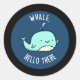 Pegatina Redonda Ballena Hola Allí Funny Whale Pun Dark BG