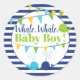 Pegatina Redonda Ballenas es un niño Invitación infantil a rayas