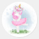 Pegatina Redonda Ballerina de unicornio con corona de flores