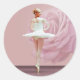Pegatina Redonda Ballerina en blanco con rosa rosa rosa