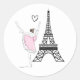 Pegatina Redonda Ballet de Baile Ballerina y Torre Eiffel