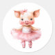 Pegatina Redonda Ballet de baile de cerdito lindo