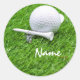 Pegatina Redonda Balón de golf y tee sobre césped verde