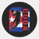 Pegatina Redonda Baloncestistas cubanos Bandera de Baloncesto