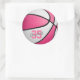 Pegatina Redonda baloncesto blanco rosado