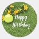 Baloncesto de tenis con flor amarilla cumpleaños Pegatina clásico Round