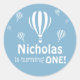 Pegatina Redonda Balones Blue Hot Air Balloons Primer cumpleaños de