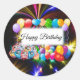 Un Pegatina amable presenta globos y fuegos artificiales de colores con texto... Feliz cumpleaños... Puede personalizar fácilmente con su elección de texto.