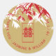 Pegatina Redonda Bambú rojo y oro deja a Boda chino Shuang Xi