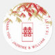 Pegatina Redonda Bambú rojo y oro deja Boda asiático zen moderno