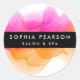 Los pegatinas de ronda de moda son perfectos para sus materiales de negocios, marcas, paquetes y correspondencia. El diseño presenta un manto de tinta acuarela en un vibrante naranja rosa fucsia y dorado, con dos líneas de texto personalizado sobre letras blancas modernas en una franja negra.