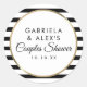 Con un fondo clásico de rayas blancas y negras, estos elegantes pegatinas de ducha de novias de parejas presentan un elegante borde de Relieve metalizado de oro falso enmarcando sus detalles especiales personalizados en la tipografía de moda. Diseñado por Thisisnotme©