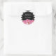 Pegatina Redonda Bandas negras y blancas con flores rosas
