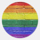 Bandera arcoiris pintada en una pared de ladrillo grueso