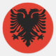El dragón negro sobre fondo rojo. Gran bandera nacional albanesa en muchos productos diferentes y recuerdos de Albania.