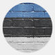 Bandera de Estonia pintada en una pared de ladrillo negro