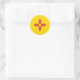 Pegatinas de la bandera del estado de Nuevo México con la estrella del nativo americano Zia. El pueblo de Zia está situado junto a la ruta entre Albuquerque y Santa Fe.