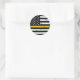 Thin Gold Line Dispatcher Patch - Bandera estadounidense con colores de despachador. Este delgado pegatina de línea dorada es perfecto para sobres, membrete, gracias, decoraciones para fiestas de retiro o graduación, y regalos en eventos o a niños en programas escolares de un despachador visitante o de un agente de la ley. Para todos los despachadores de telecomunicaciones de seguridad pública, emergencia 911, despachadores de policía, bomberos, ambulantes, primeros auxilios y trabajadores y simpatizantes de primera línea. Consulte nuestra colección para ver parches para dispatcher y parches de id personalizados. DERECHOS RESERVADOS © 2020 Judy Burrows, Black Dog Art - Todos los derechos reservados. Pegatina redondo clásico de la línea de oro delgada de la bandera estadounidense