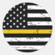 Pegatina Redonda Bandera estadounidense delgada línea de oro