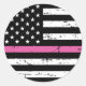Pegatina Redonda Bandera estadounidense Línea rosa delgada