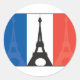 Pegatina Redonda Bandera francesa y Torre Eiffel