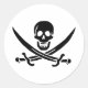 Pegatina Redonda Bandera Pirata Calavera Espadas Cruzadas