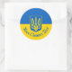 Pegatina Redonda Bandera ucraniana con escudo de armas y texto pers