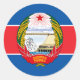 Pegatina Redonda Bandera y emblema norcoreanos, bandera de Corea de
