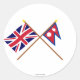 Pegatina Redonda Banderas cruzadas de Reino Unido y Nepal