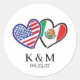 Pegatina Redonda Banderas del Corazón Mexicano Americano