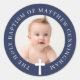 Pegatina Redonda Baptism Boy | Foto Personalizado y cruz simple