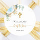 Pegatina Redonda Baptism eucalipto vegetación azul floral boy